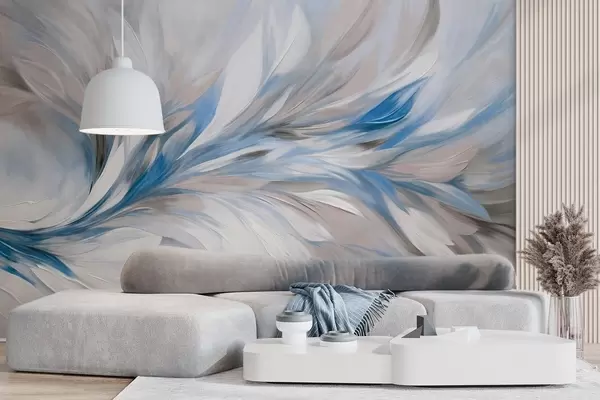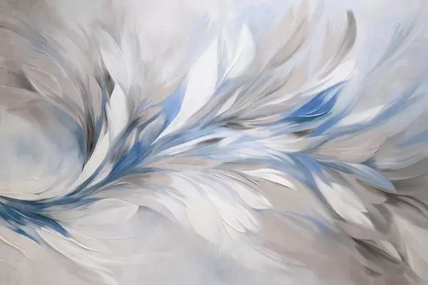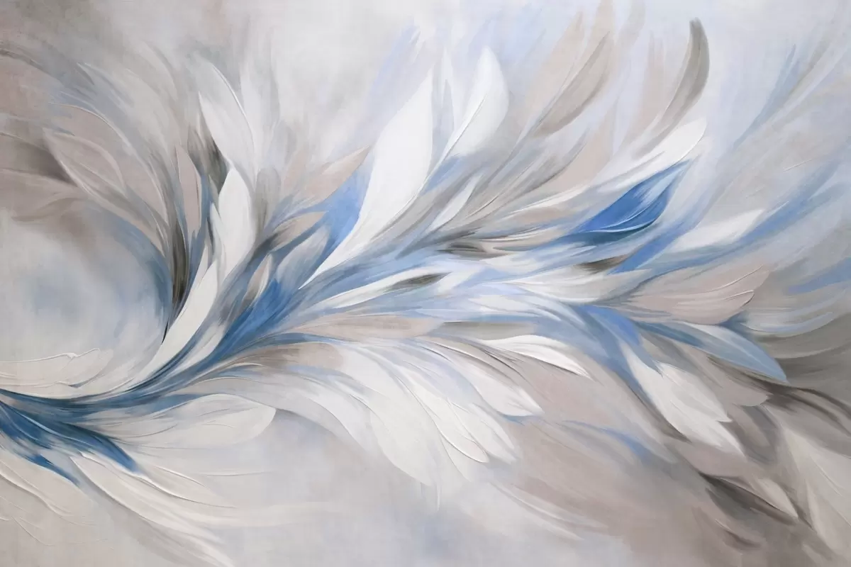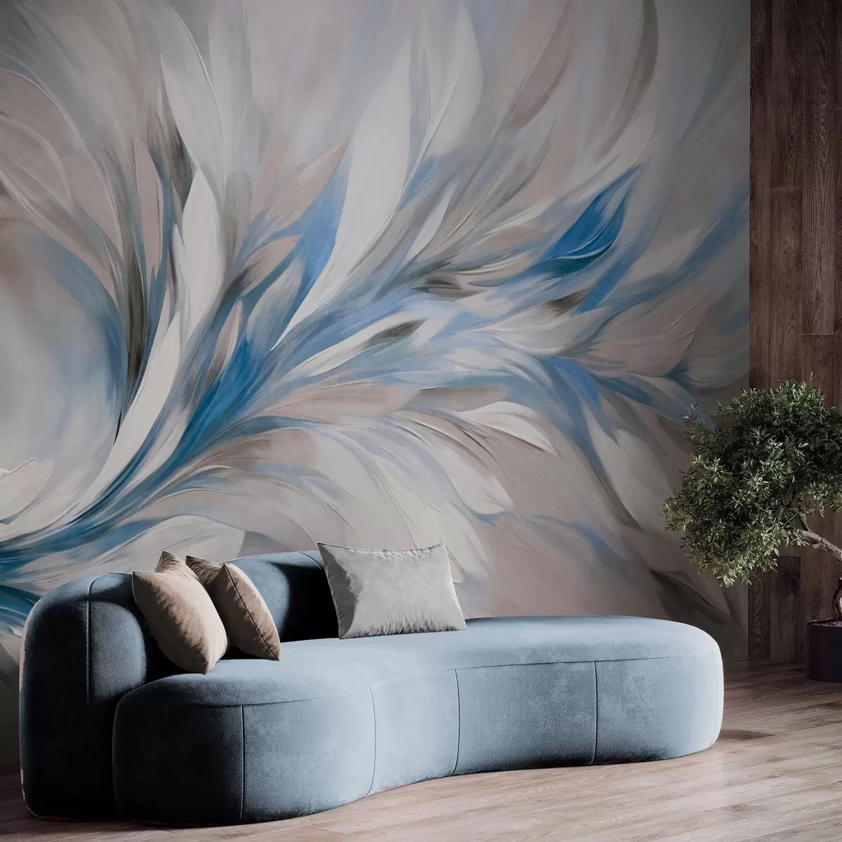 Carta da parati Stile pittorico astratto con pennellate bianche, blu e grigie su uno sfondo morbido e chiaro. nr. w09552v1