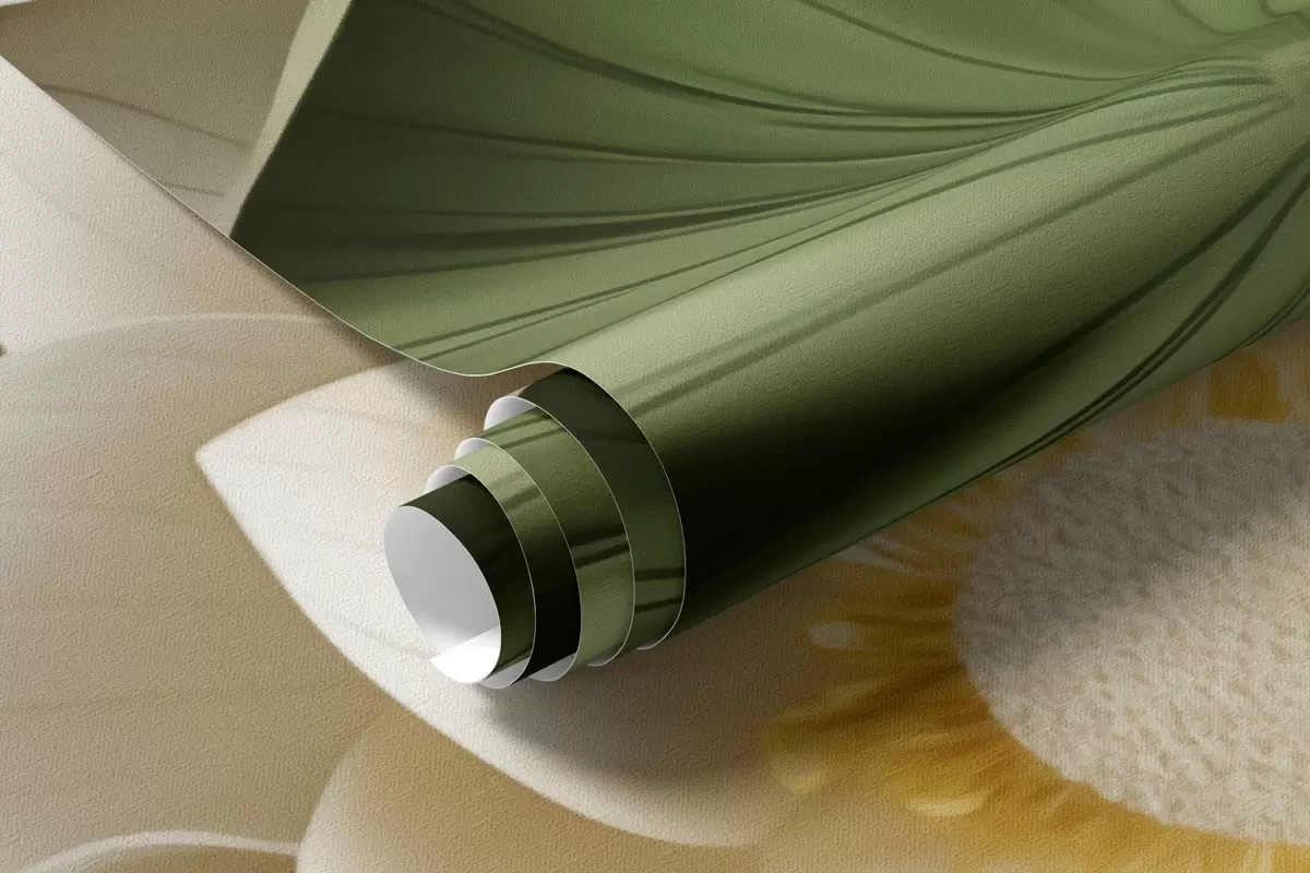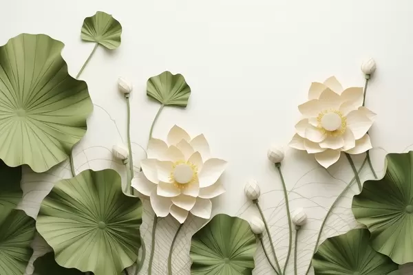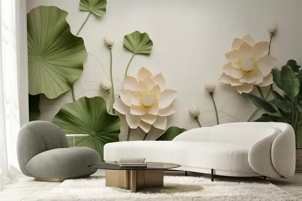 Carta da parati Fiori di loto in 3D con foglie verdi testurizzate, stile minimalista nr. w09560