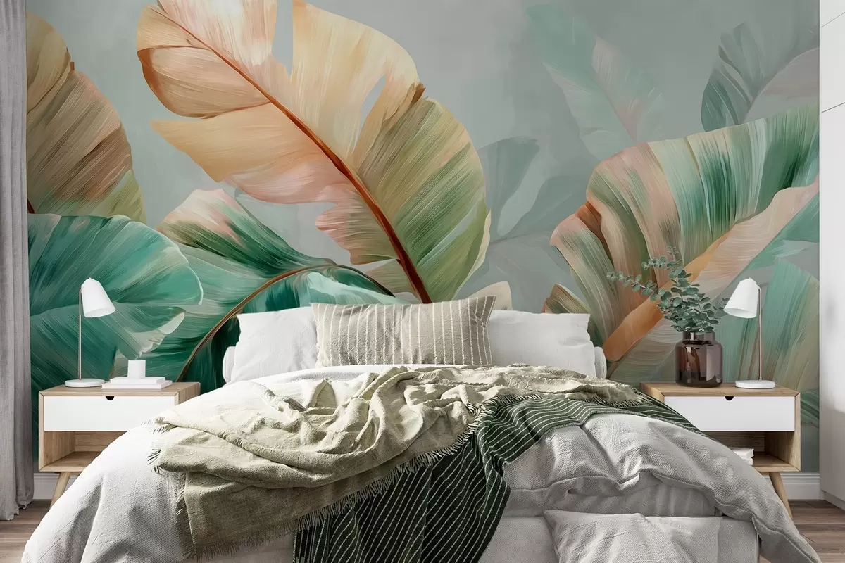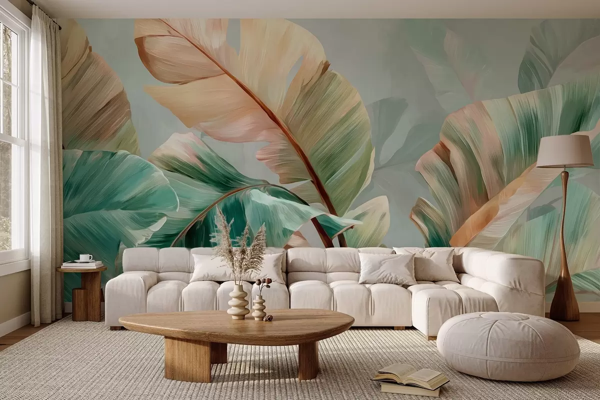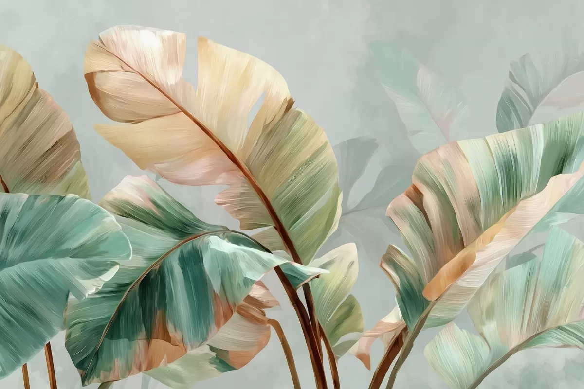 Carta da parati Delicate foglie di banano tropicali nei toni pastello del giallo-verde nr. w09581
