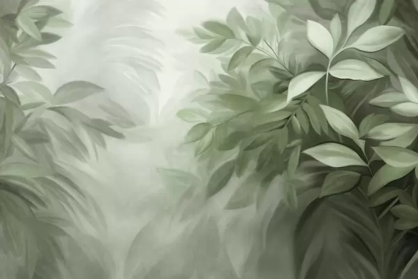 Carta da parati Foglie marroni e beige con fogliame morbido e sfumato, in uno stile pittorico con pennellate visibili. nr. w09584