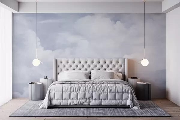 Carta da parati Cielo pastello con texture ricoperto di nuvole bianche dall'estetica morbida e minimalista nr. w09589