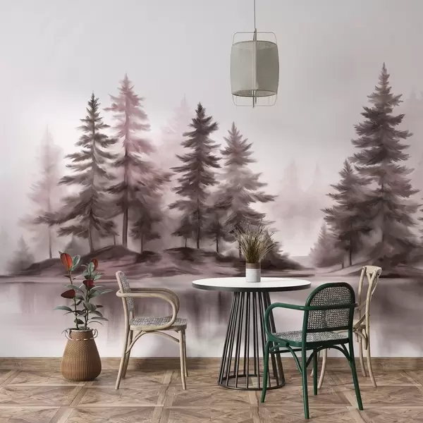 Carta da parati Una foresta nebbiosa e ricca di texture con alti pini dipinti in modo realistico nr. w09610v1