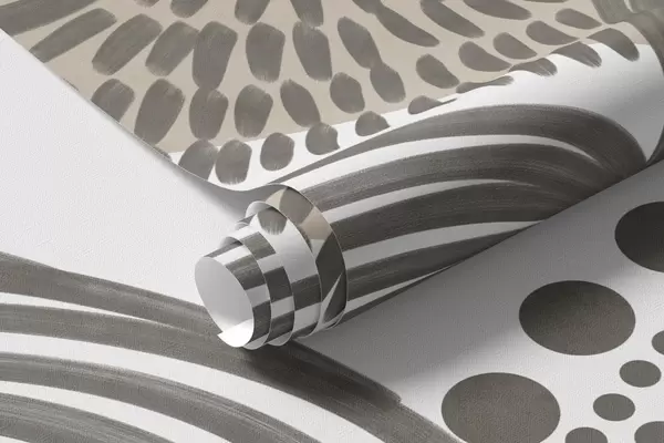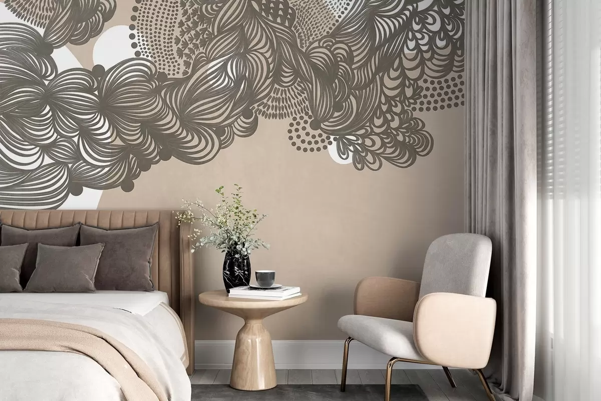 Carta da parati Disegno astratto con texture su sfondo beige, con linee intricate e texture puntinate. nr. w09621