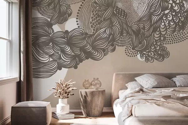 Carta da parati Disegno astratto con texture su sfondo beige, con linee intricate e texture puntinate. nr. w09621