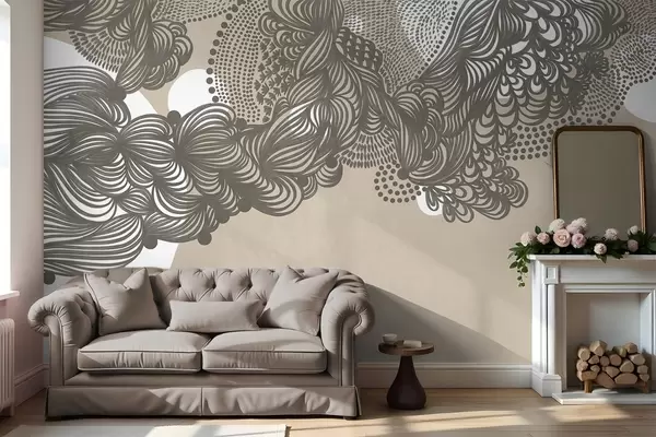 Carta da parati Disegno astratto con texture su sfondo beige, con linee intricate e texture puntinate. nr. w09621