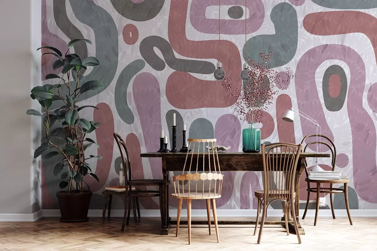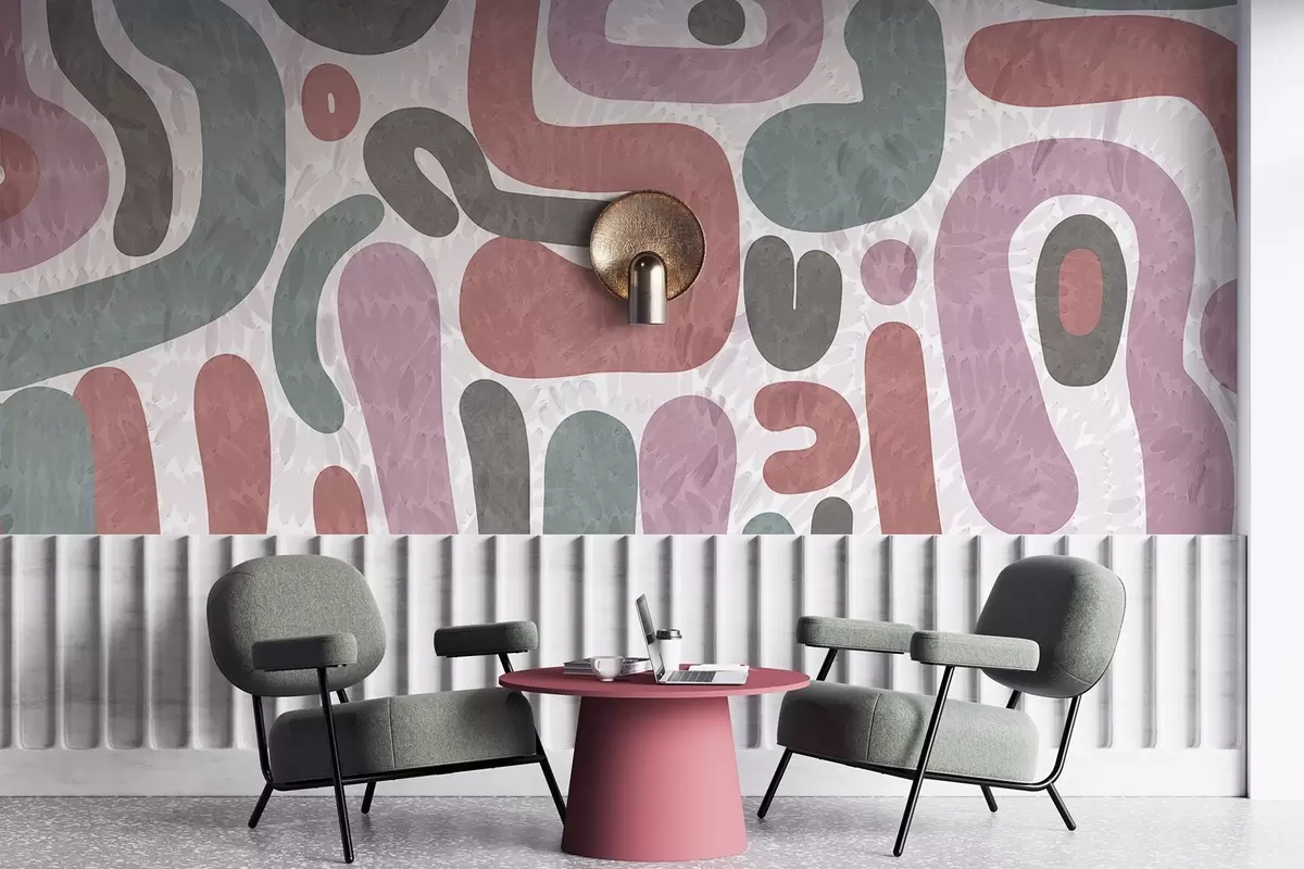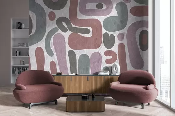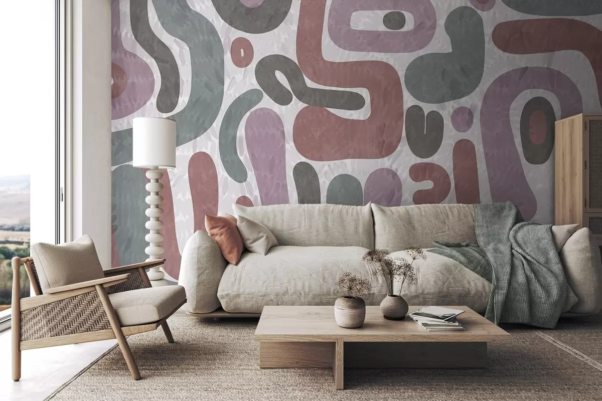 Carta da parati Forme astratte con texture in tonalità tenui di rosa, verde e grigio, su uno sfondo con texture arte moderna nr. w09622