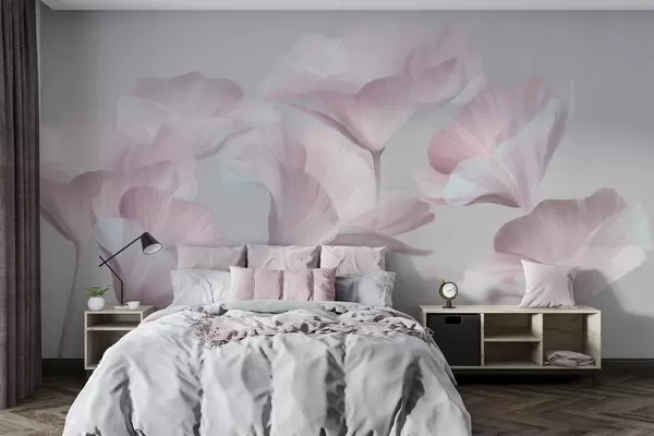 Carta da parati Fiori di loto traslucidi di colore rosa pallido con petali delicati su uno sfondo grigio tenue nr. w09640v1