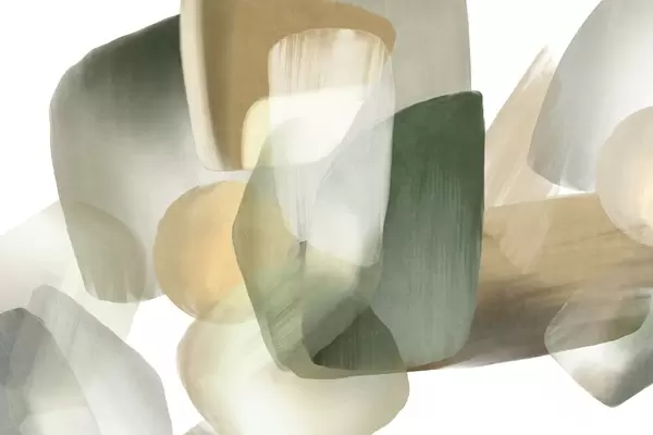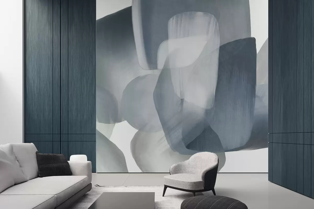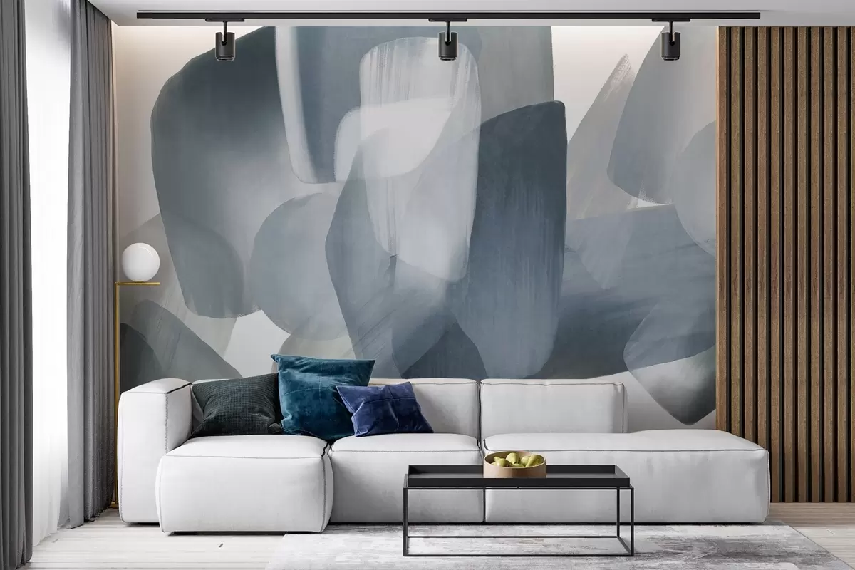 Carta da parati Forme astratte con texture in colori tenui blu e grigio, con bordi morbidi e strati sovrapposti nr. w09642v1
