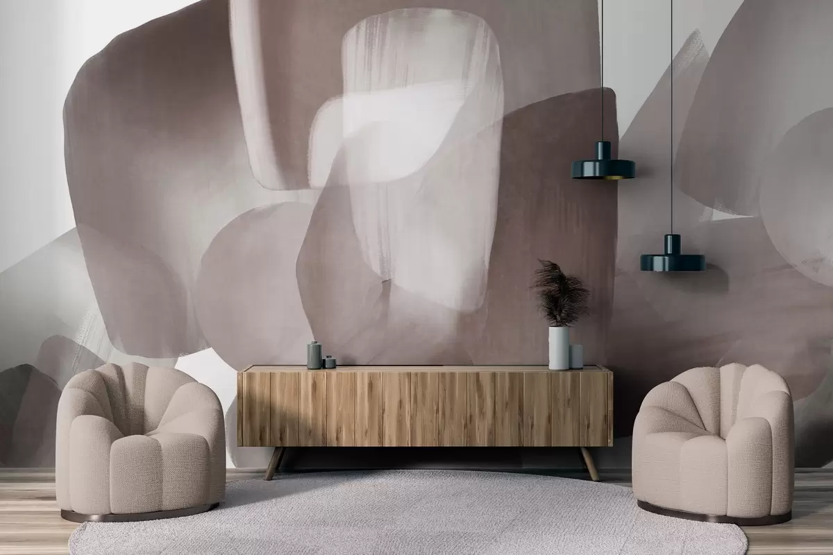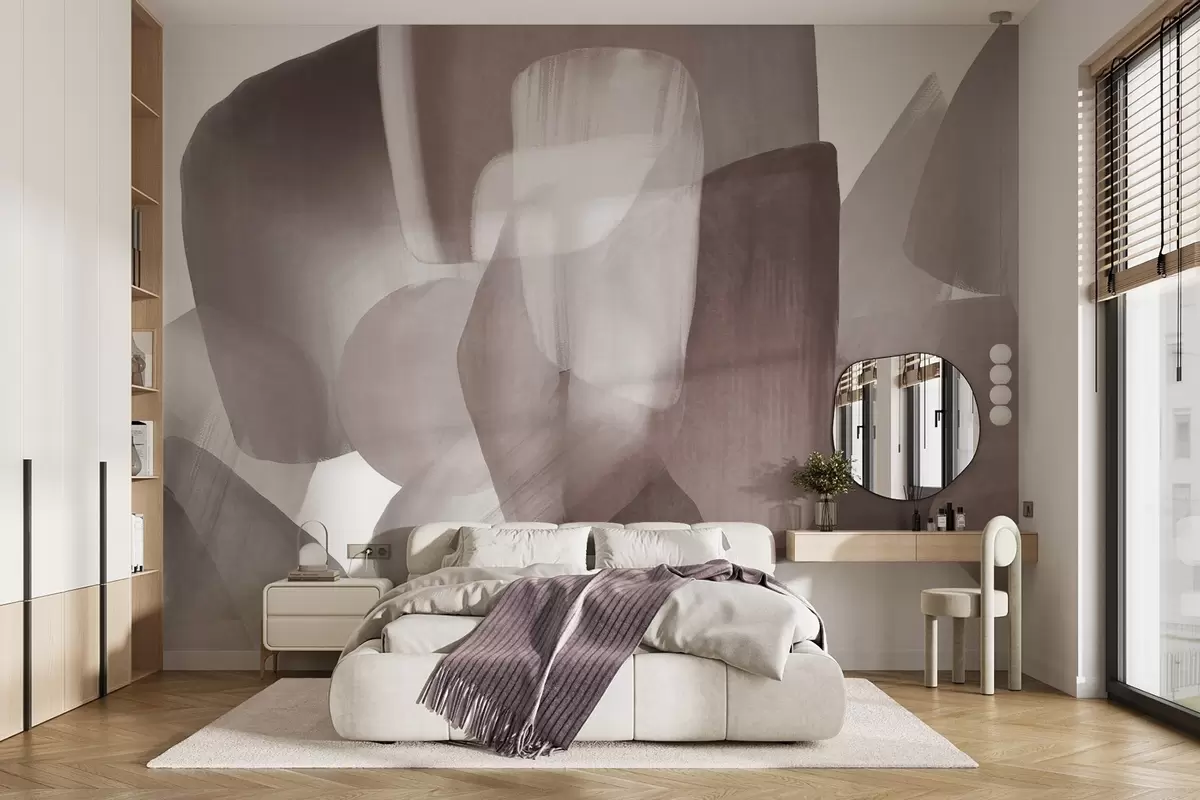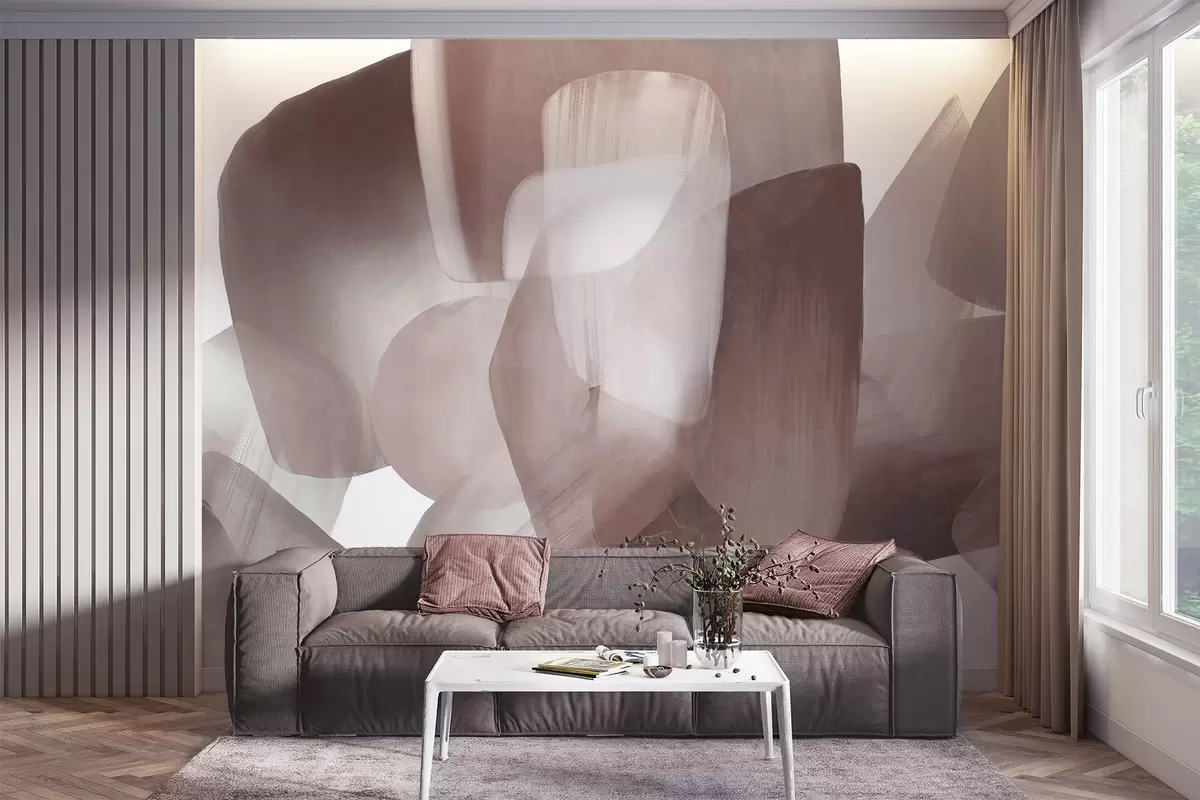 Carta da parati Forme astratte con texture in colori tenui bordeaux e grigio, con bordi morbidi e strati sovrapposti. nr. w09642v2