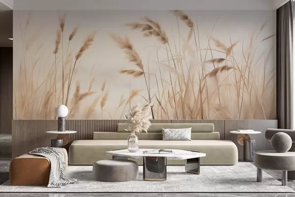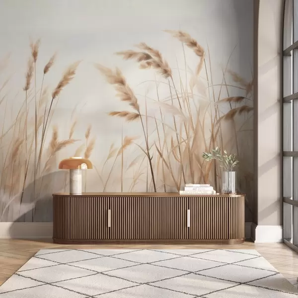 Carta da parati Erba alta e secca con spighe di grano nel campo su uno sfondo morbido e chiaro nr. w09648