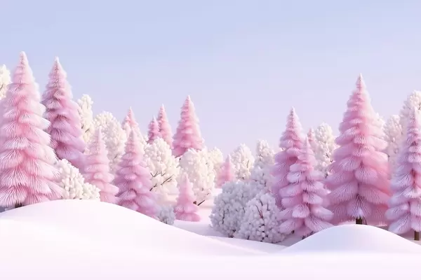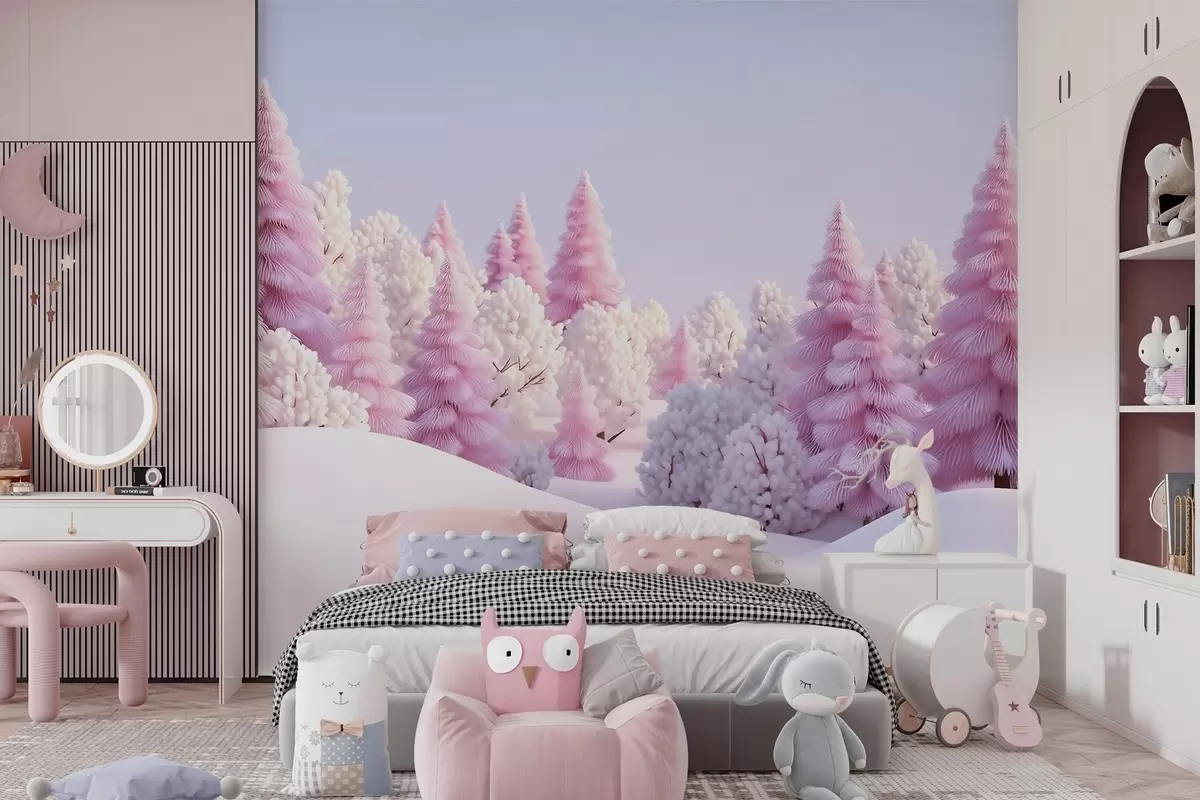 Carta da parati Foresta invernale innevata dai toni rosa nr. w09654