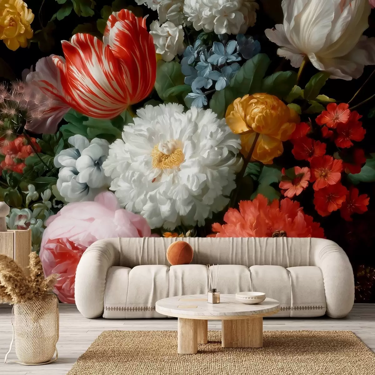Carta da parati Lussuosa composizione floreale ispirata a un giardino primaverile nr. w09676