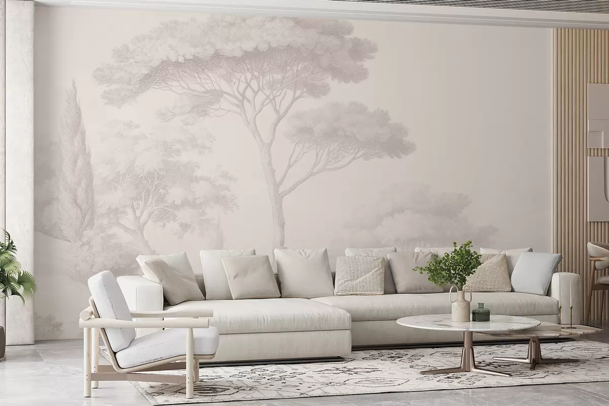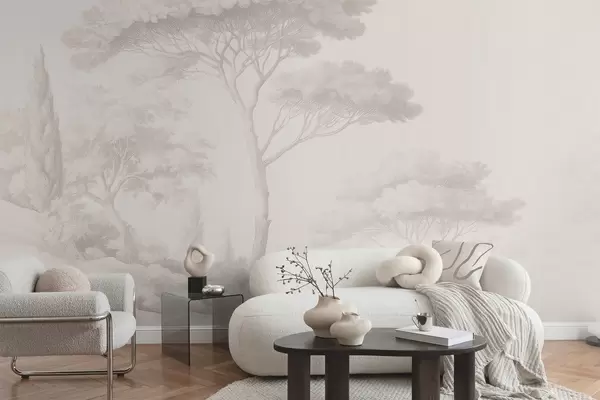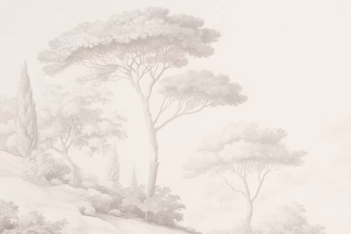 Carta da parati Paesaggio boschivo tranquillo in una palette di colori beige nr. w09685