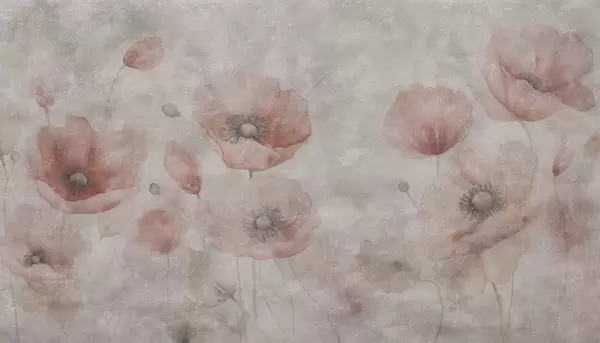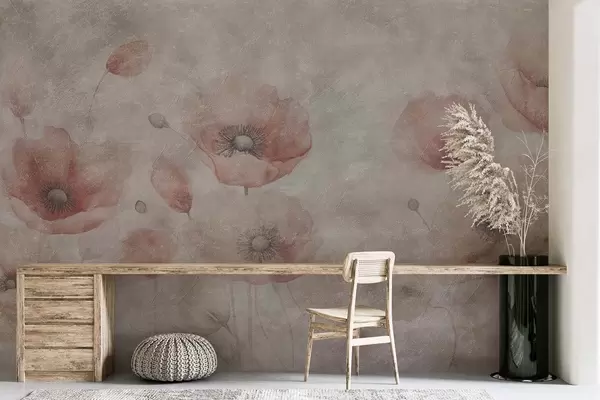 Carta da parati Grandi fiori di papavero su una parete con effetto anticato nr. w09686