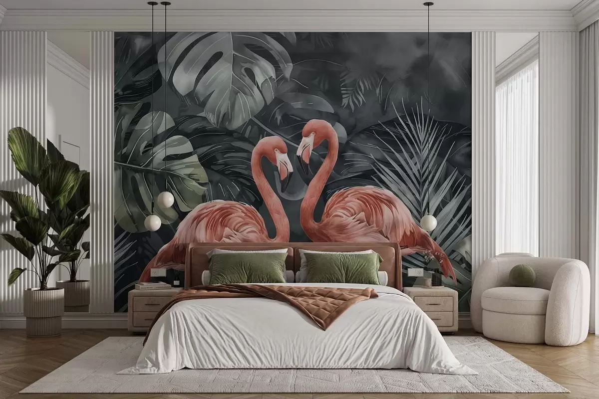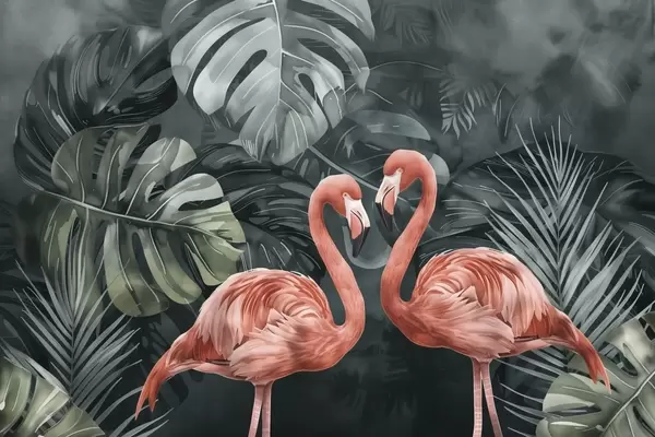 Carta da parati Una coppia di fenicotteri tra piante tropicali nr. w09687