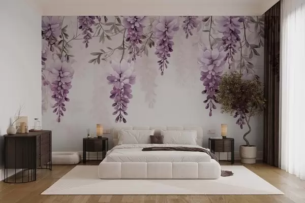 Carta da parati Delicati rami di lavanda di grandi dimensioni appesi alla parete, imitazione acquerello nr. w09690