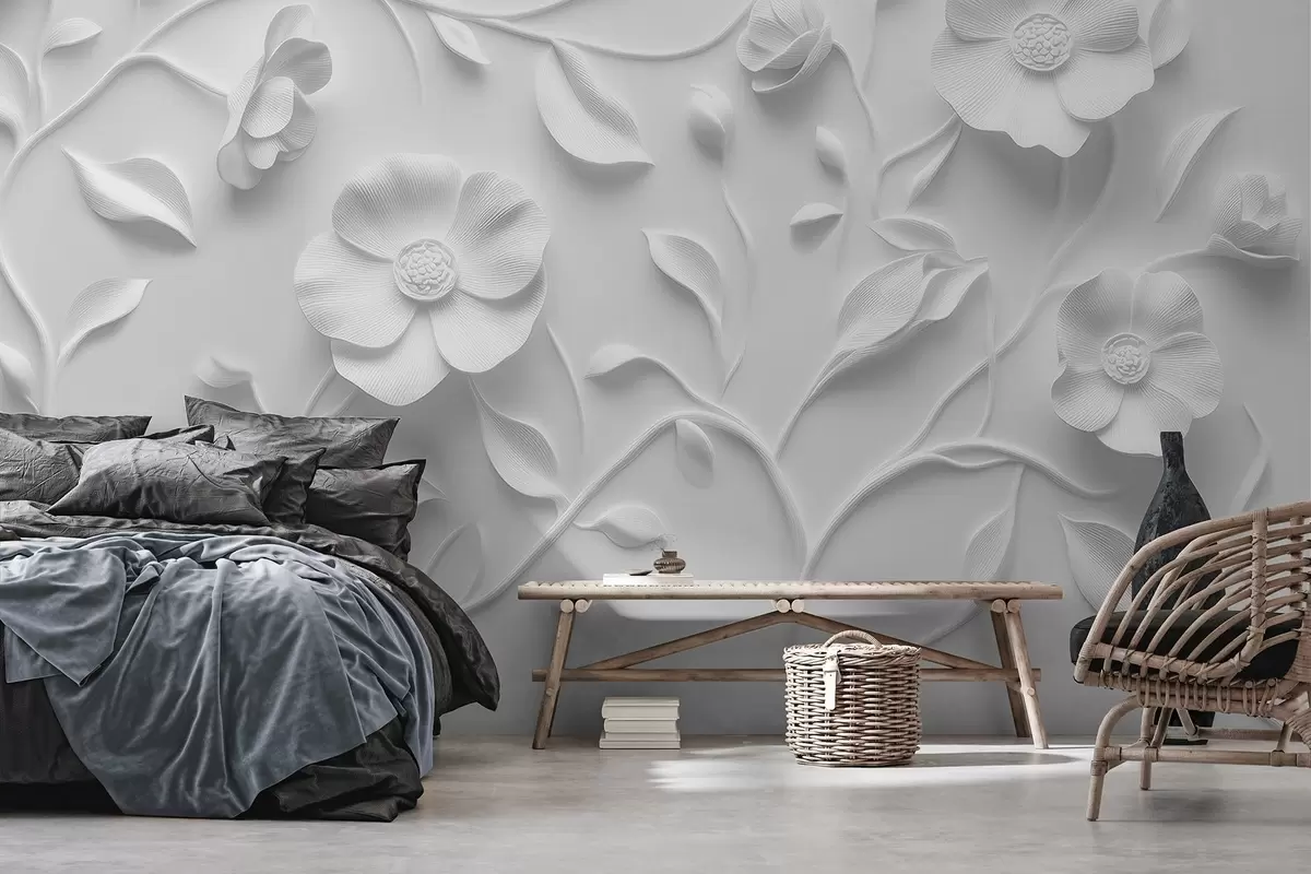 Carta da parati Ornamento floreale in rilievo grigio nr. w09710