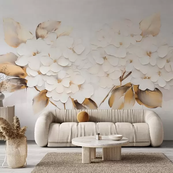Carta da parati Lussuose ortensie con foglie gialle nr. w09711