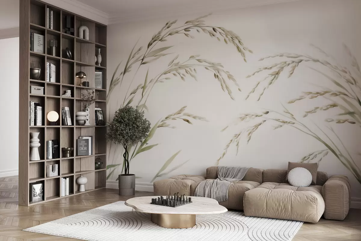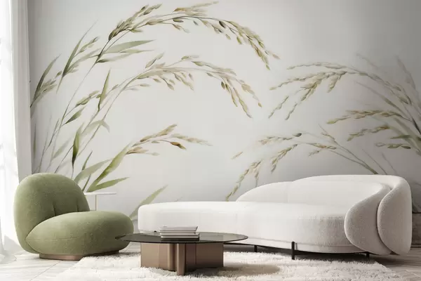 Carta da parati Delicate erbe cerealicole dai toni pastello con un delicato effetto acquerello nr. w09712