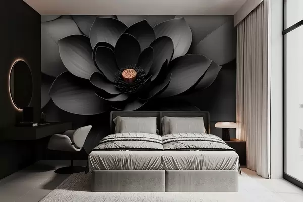 Carta da parati Fiore nero in stile minimalista con petali e un cuore dai toni caldi a contrasto nr. w09721