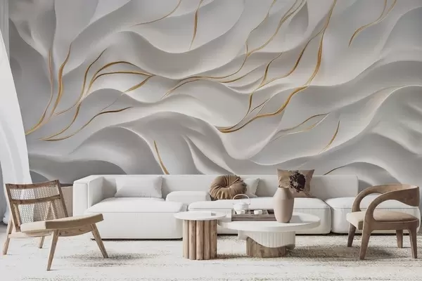 Carta da parati Onde grigie in rilievo con accenti gialli nr. w09724