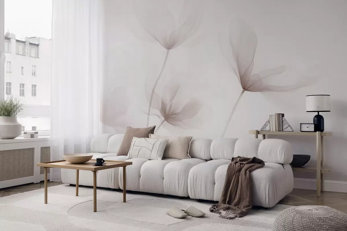 Carta da parati Fiori beige ariosi in stile minimalista e leggero nr. w09734