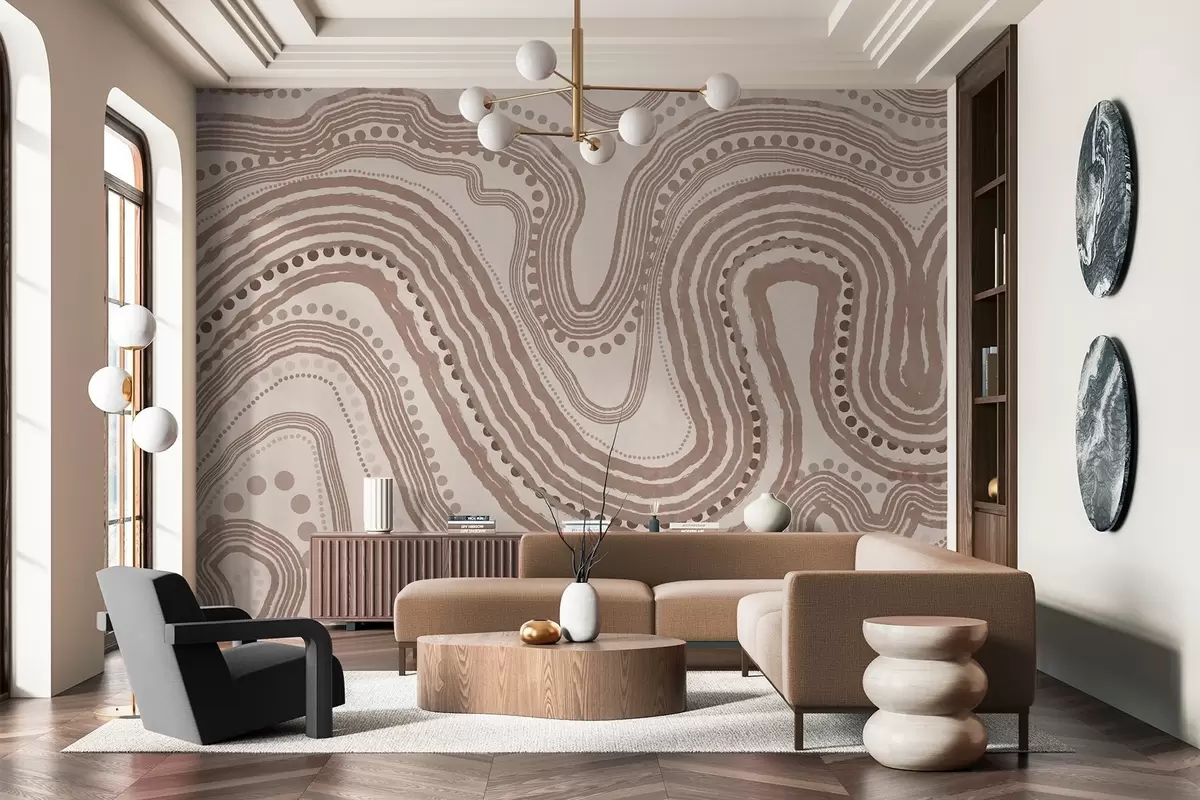 Carta da parati Linee ondulate e punti astratti marroni e beige, arte moderna con texture nr. w09747v1