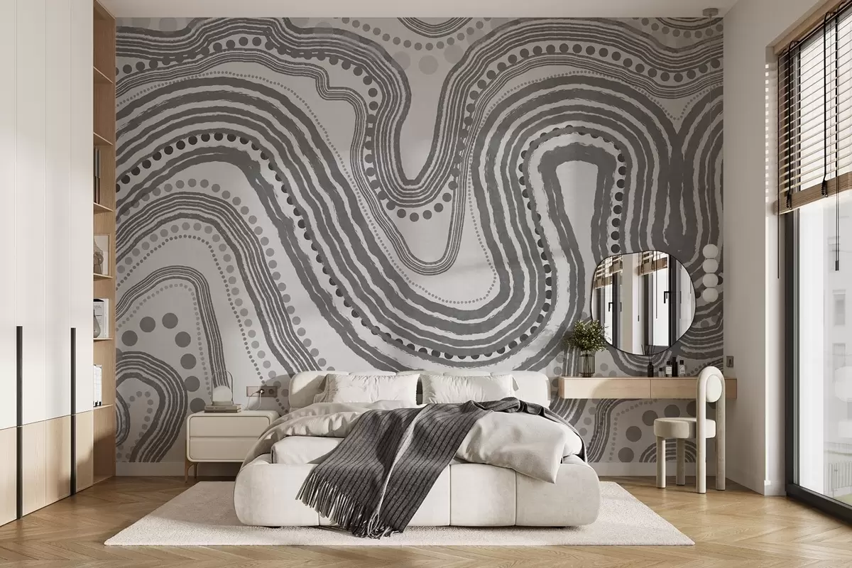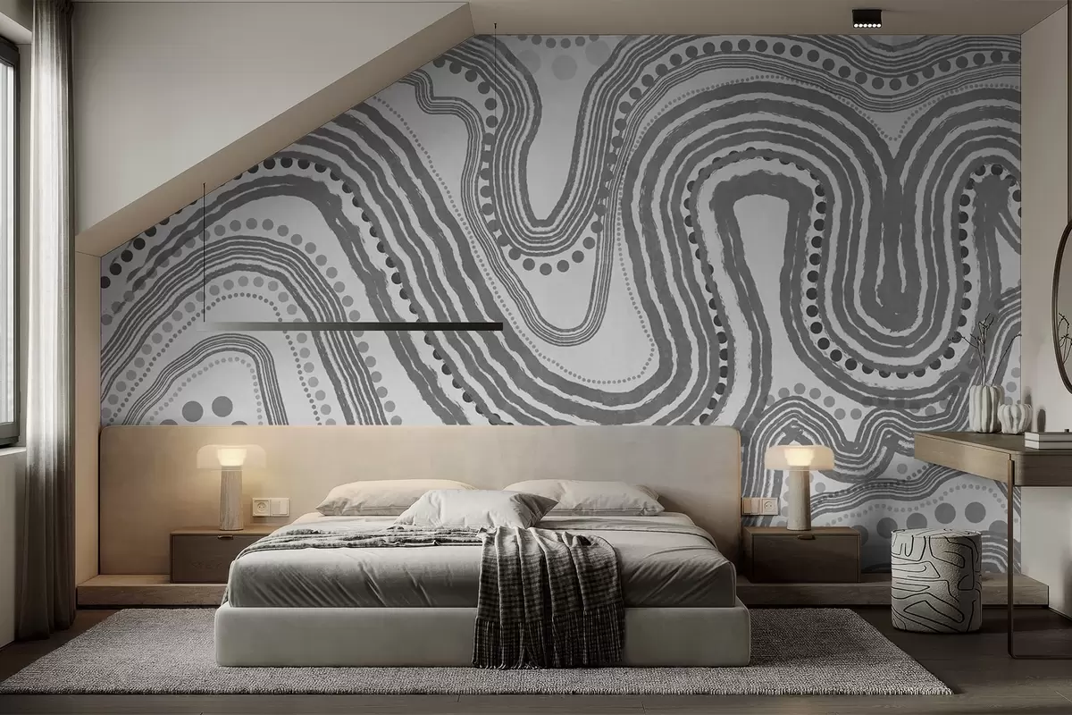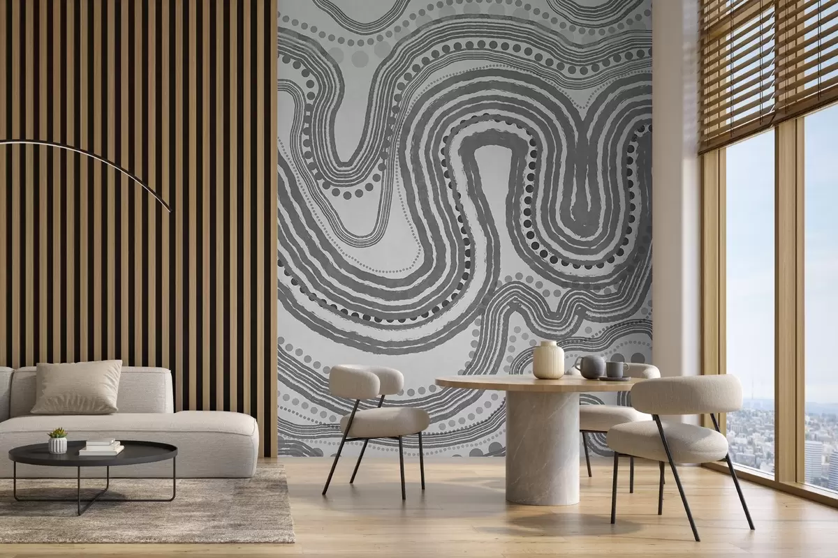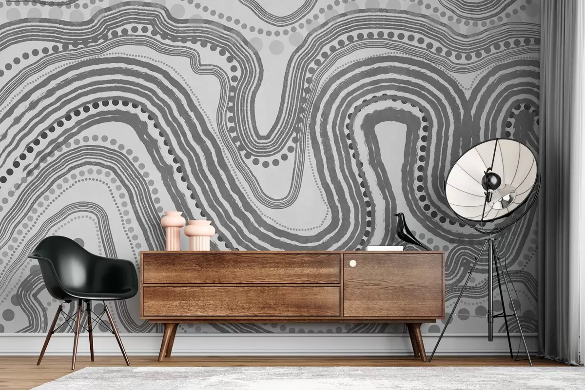 Carta da parati Linee ondulate e punti astratti grigio scuro, arte moderna con texture nr. w09747v2