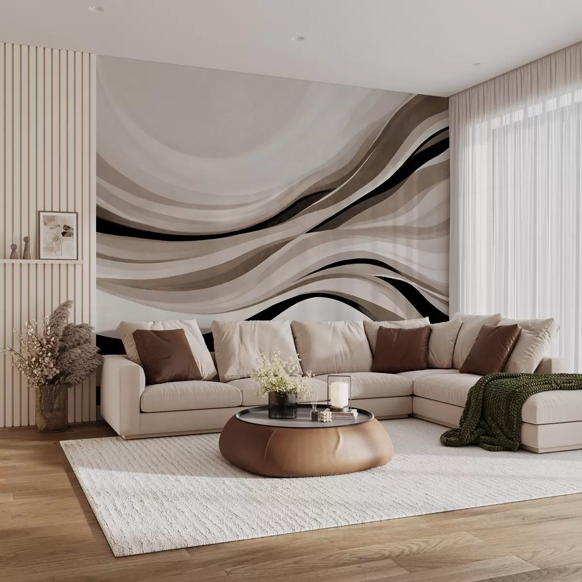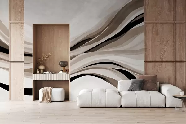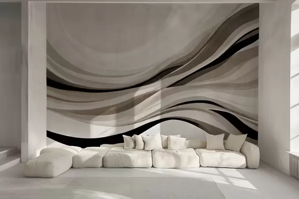 Carta da parati Linee ondulate astratte nei toni del beige e del nero su sfondo chiaro, arte materica nr. w09748