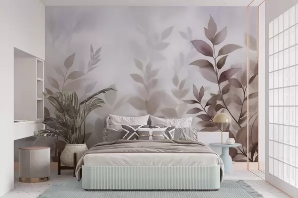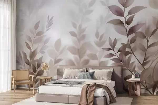 Carta da parati Rami delicati con foglie dai toni tenui di marrone e beige, stile acquerello, arte materica nr. w09750