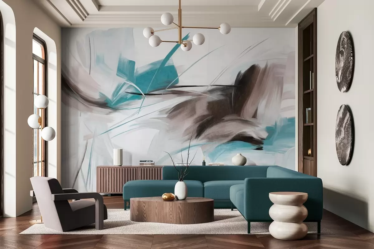 Carta da parati Stile pittorico astratto con pennellate materiche marroni e blu nr. w09755v1