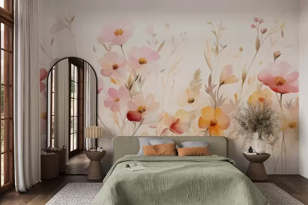 Carta da parati Campo astratto di fiori selvatici dai toni pastello, stile pittorico ad acquerello nr. w09757
