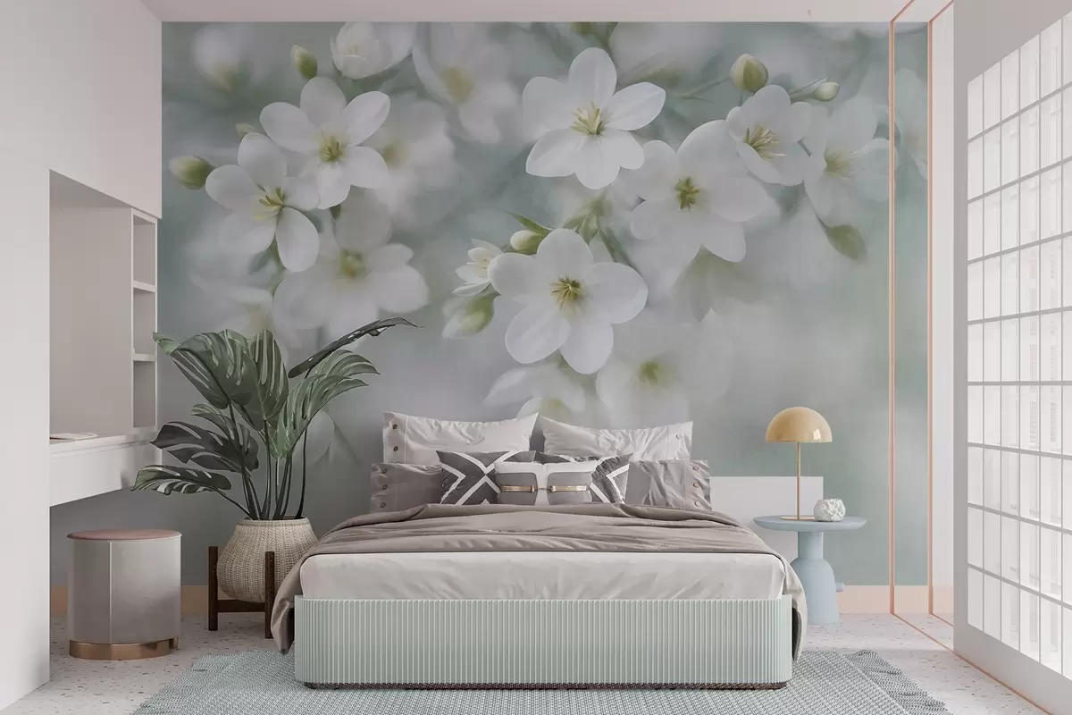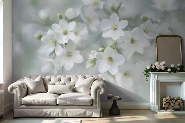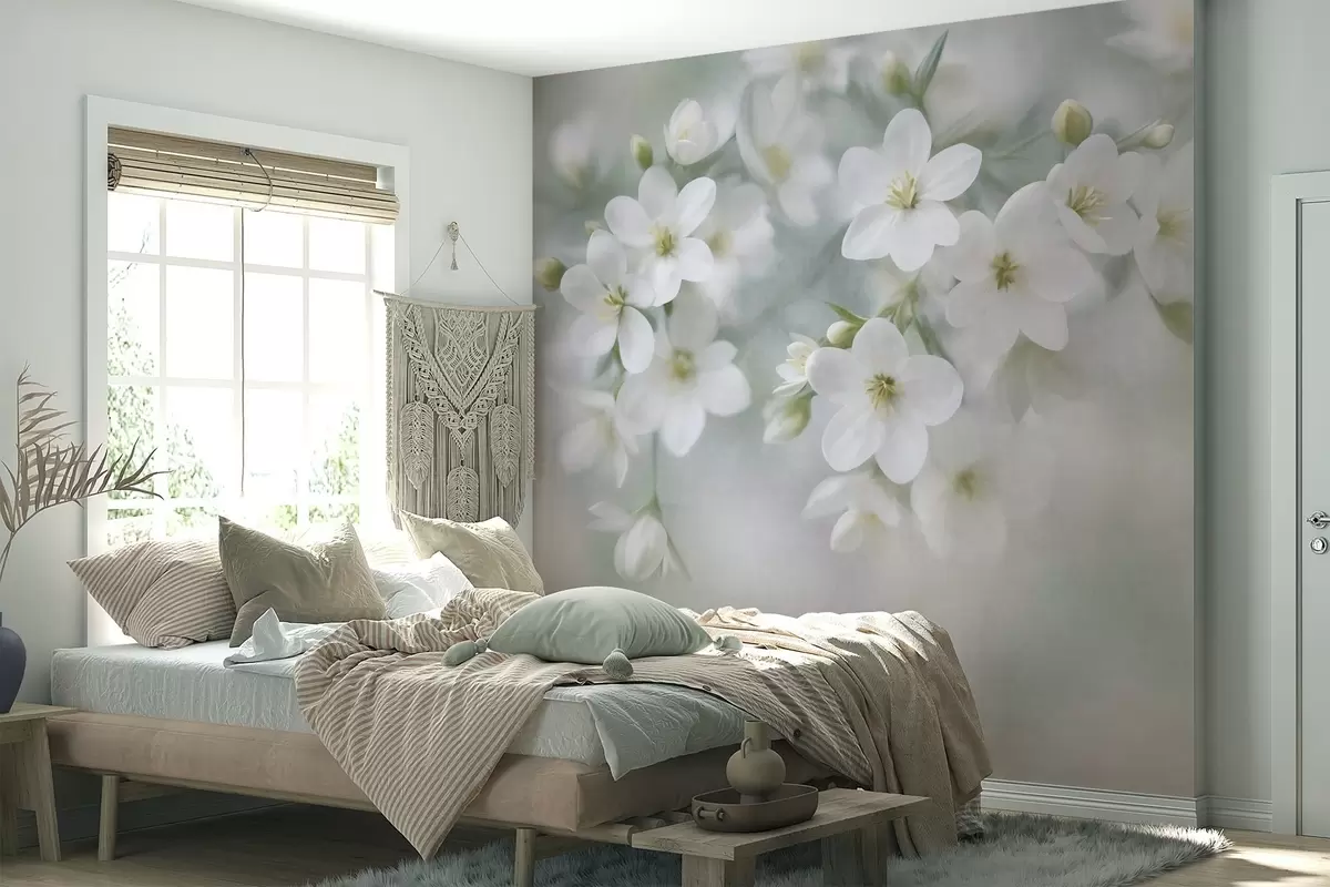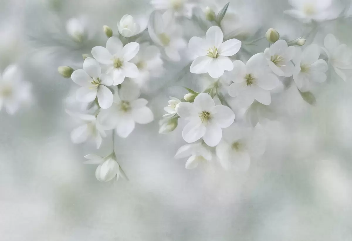 Carta da parati Fiori bianchi dalla texture delicata, sfocati delicatamente sullo sfondo nr. w09759
