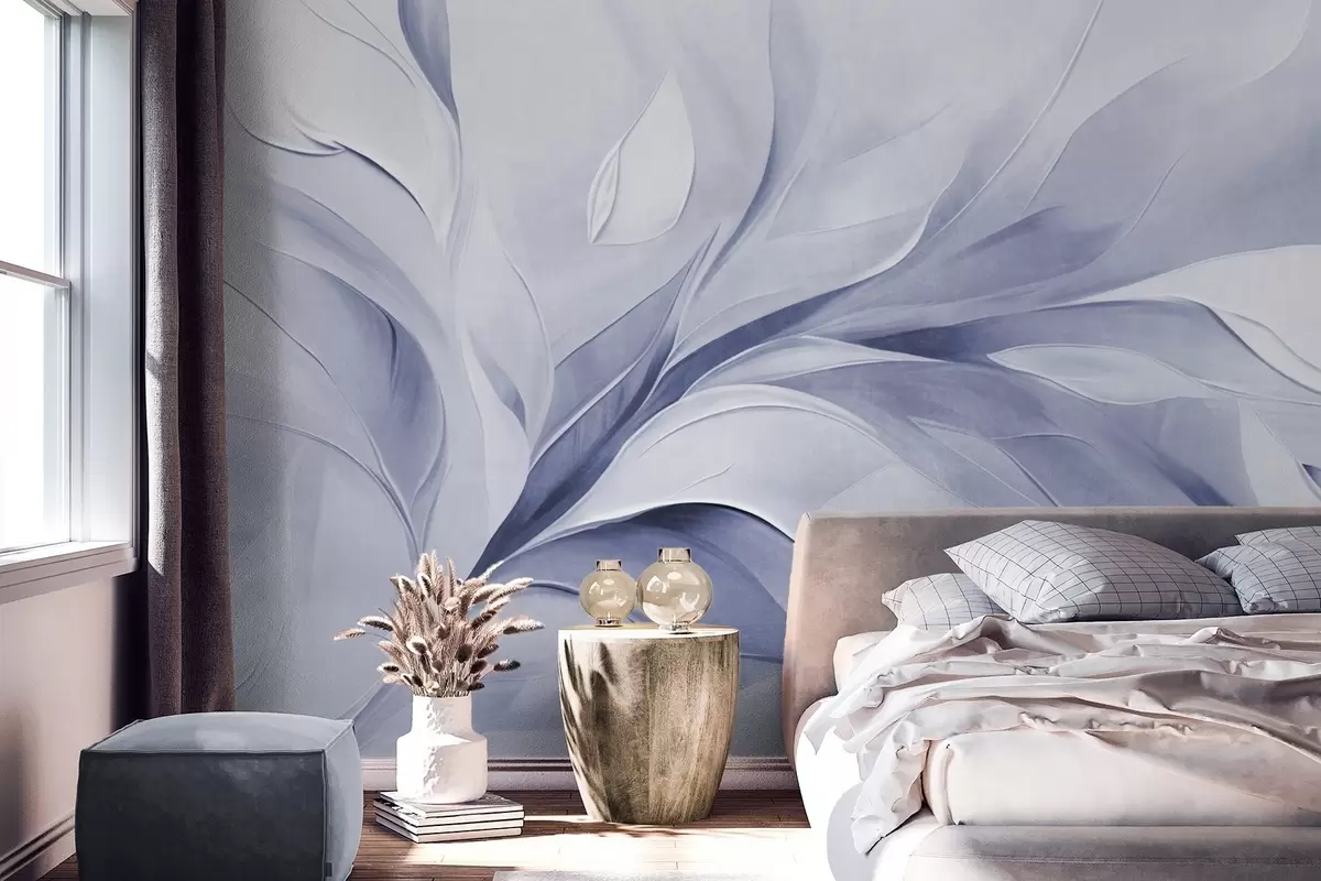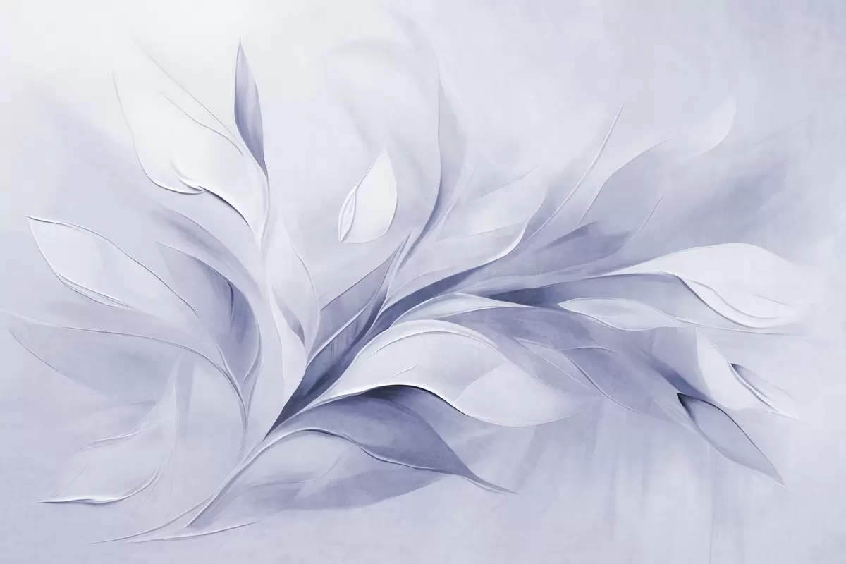 Carta da parati Stile pittorico astratto con texture di foglie fluttuanti in tonalità di azzurro pallido e bianco nr. w09765