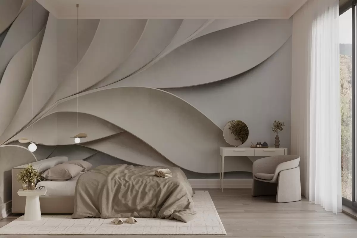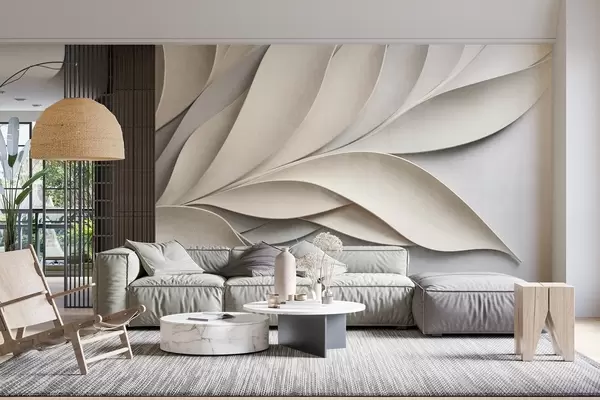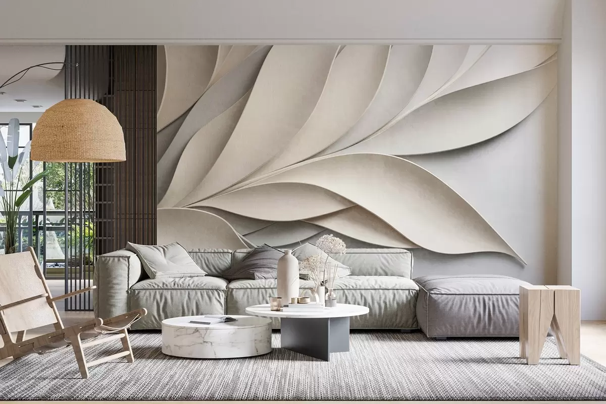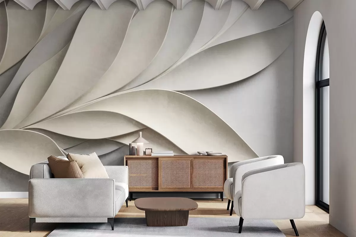 Carta da parati Foglie astratte in beige e grigio, arte moderna materica nr. w09769