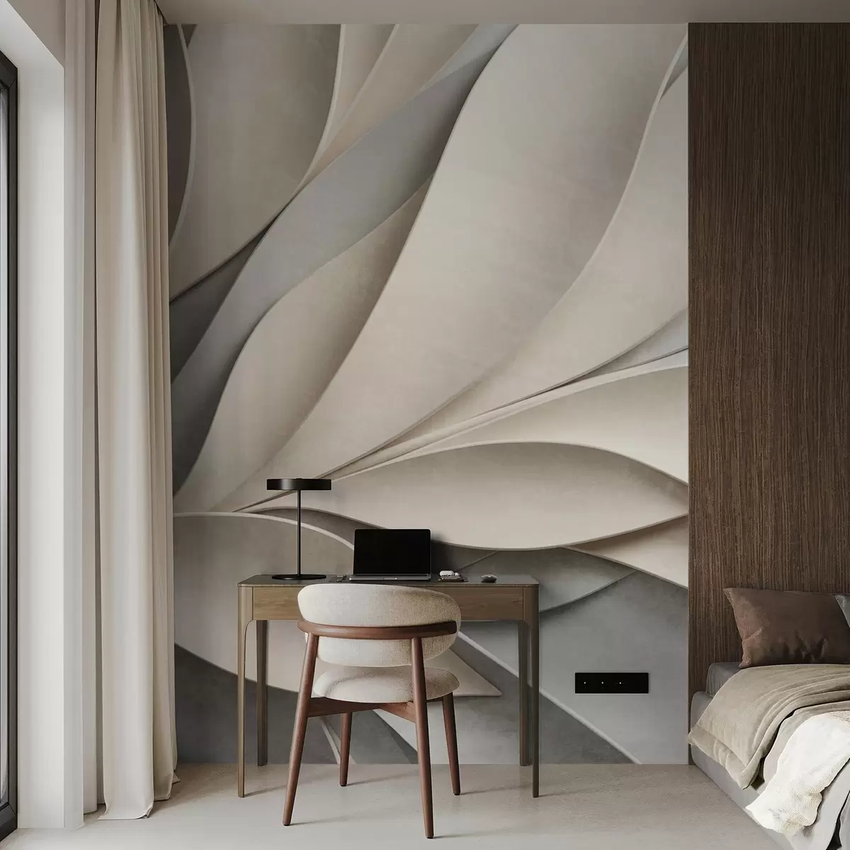 Carta da parati Foglie astratte in beige e grigio, arte moderna materica nr. w09769