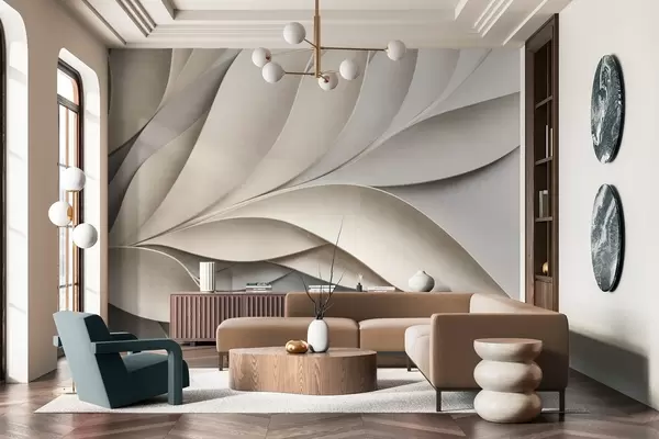 Carta da parati Foglie astratte in beige e grigio, arte moderna materica nr. w09769