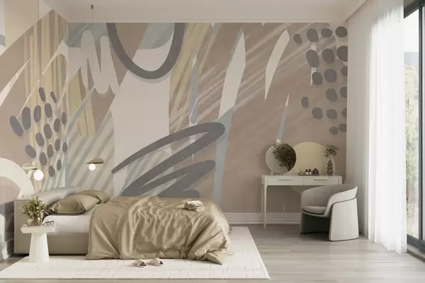 Carta da parati Stampa astratta con texture caratterizzata da forme organiche, scarabocchi e puntini in tenui tonalità pastello nr. w09774