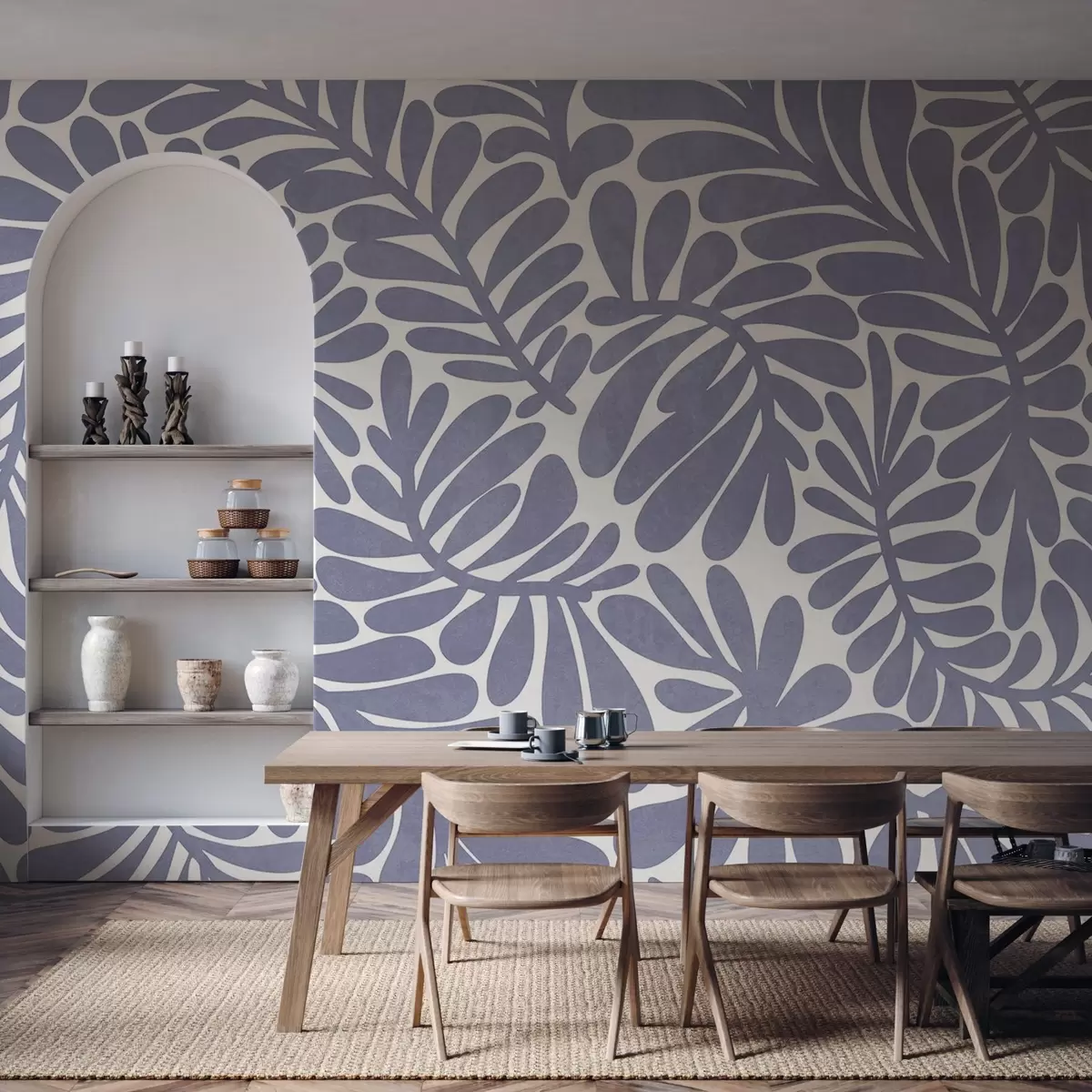 Carta da parati Foglie azzurre stilizzate su uno sfondo chiaro, opera d'arte con texture nr. w09775v1