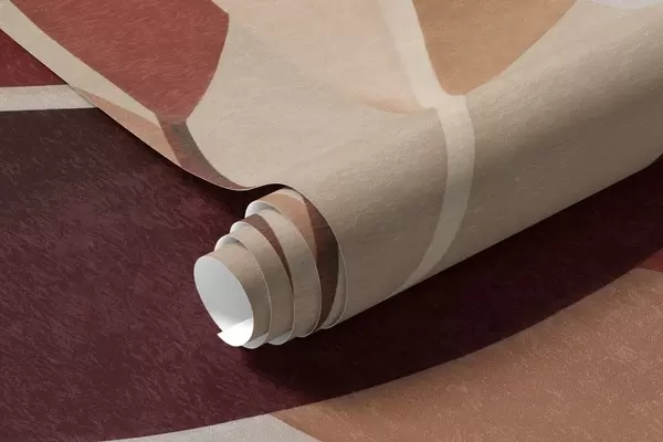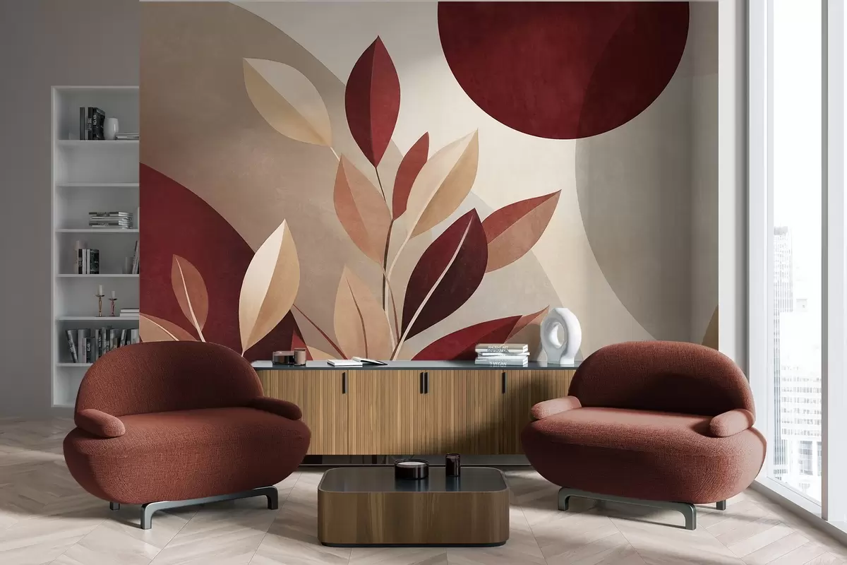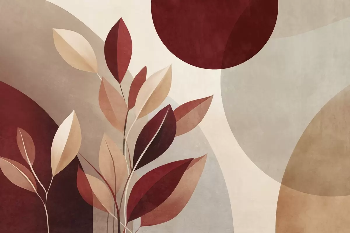 Carta da parati Foglie con texture nei toni del bordeaux e del beige su uno sfondo di forme astratte, minimalismo, arte moderna nr. w09829