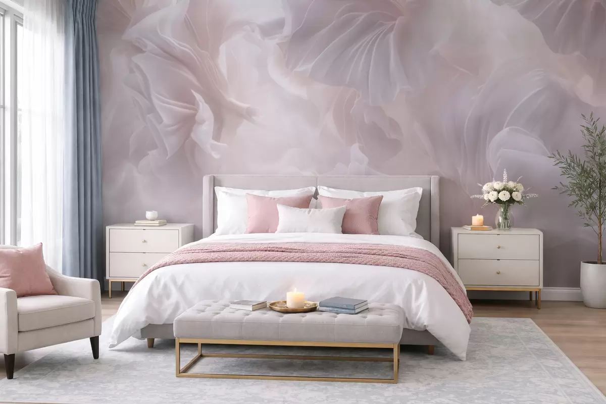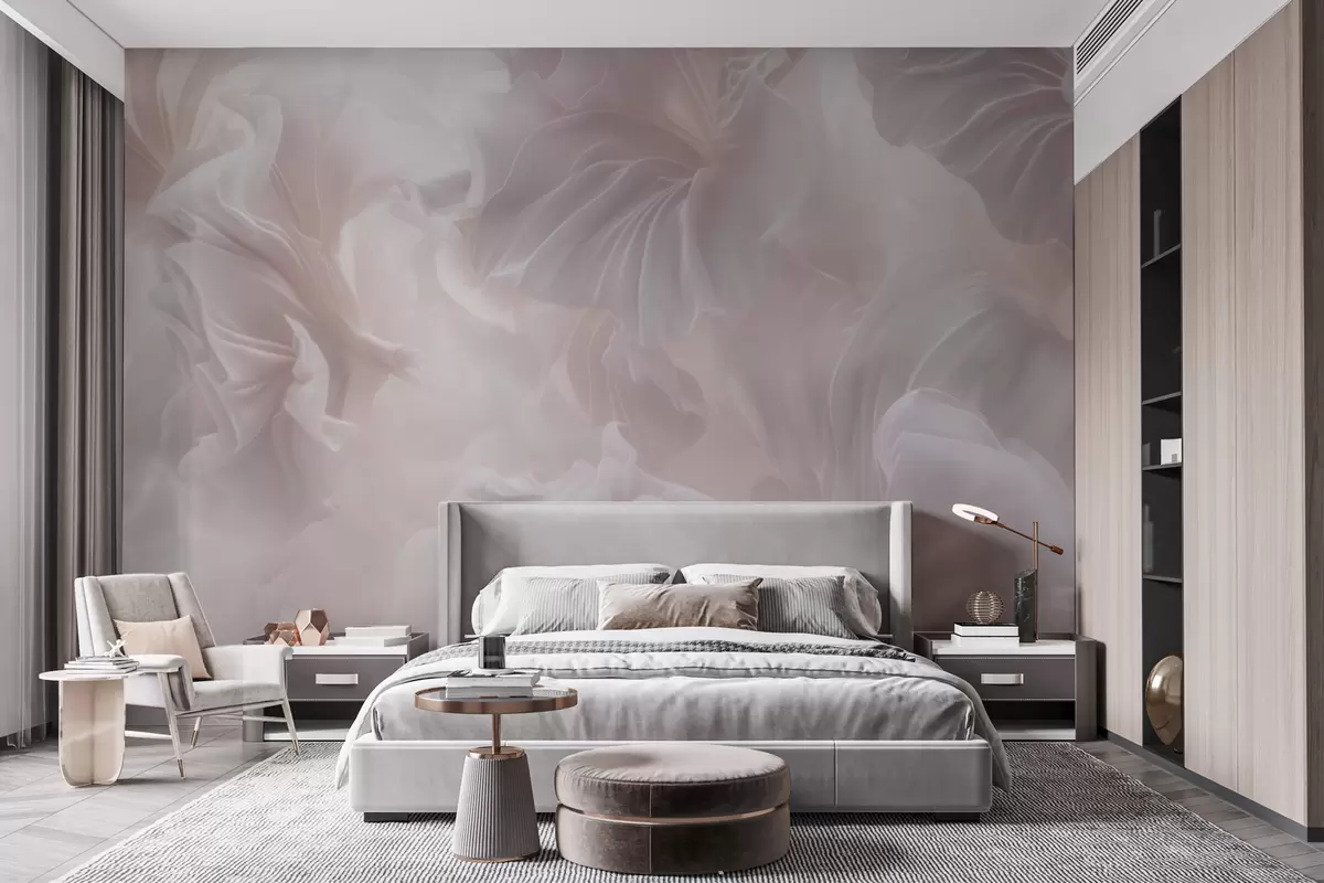 Carta da parati Forme floreali astratte con petali sinuosi in tonalità pastello nr. w09841