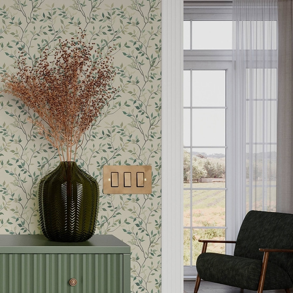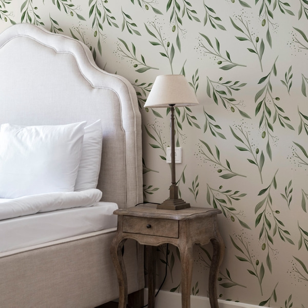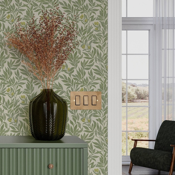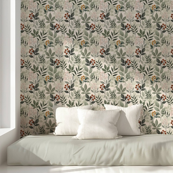 Acquerello con volute fogliate nei toni del verde e dell'ocra caldo