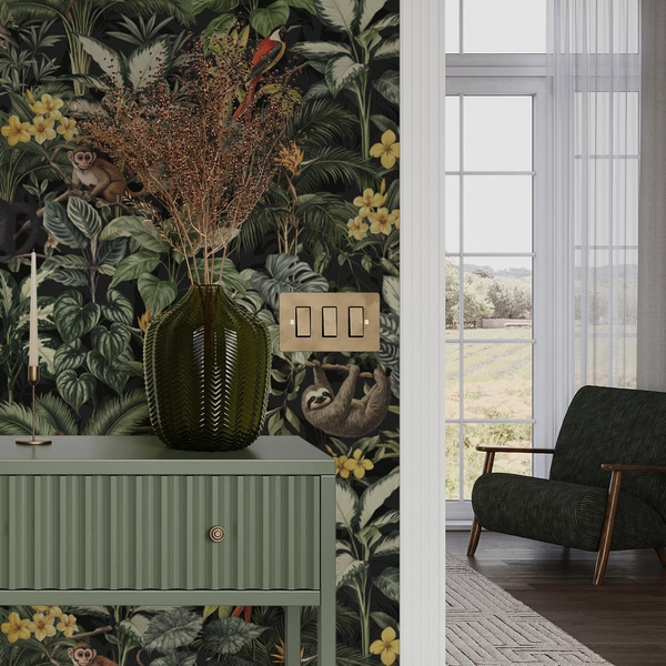 Ricchi fiori e vegetazione su uno sfondo scuro intenso
