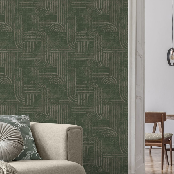 Colonne verticali di semicerchi e foglie, terracotta verde