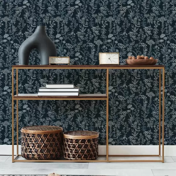 Carta da parati Piante bianche e blu su sfondo scuro Nr. a00029