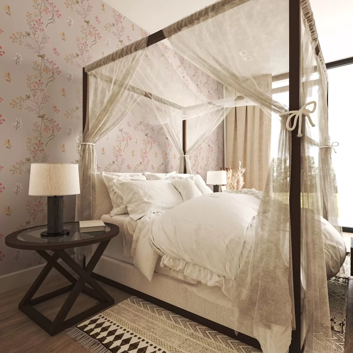 Carta da parati Fiori delicati e colibrì sui rami Nr. a00036