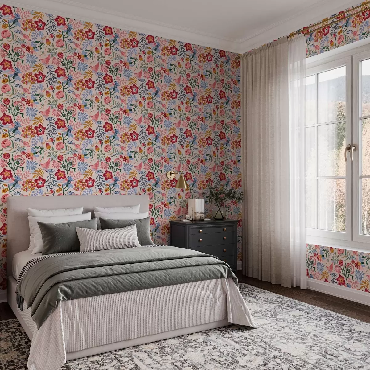 Carta da parati Composizione luminosa di fiori e bacche con pappagalli Nr. a00046