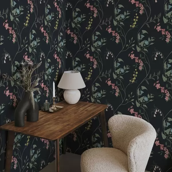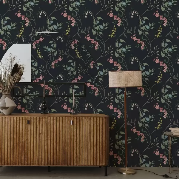 Carta da parati Fiori, foglie e steli su sfondo scuro Nr. a00047