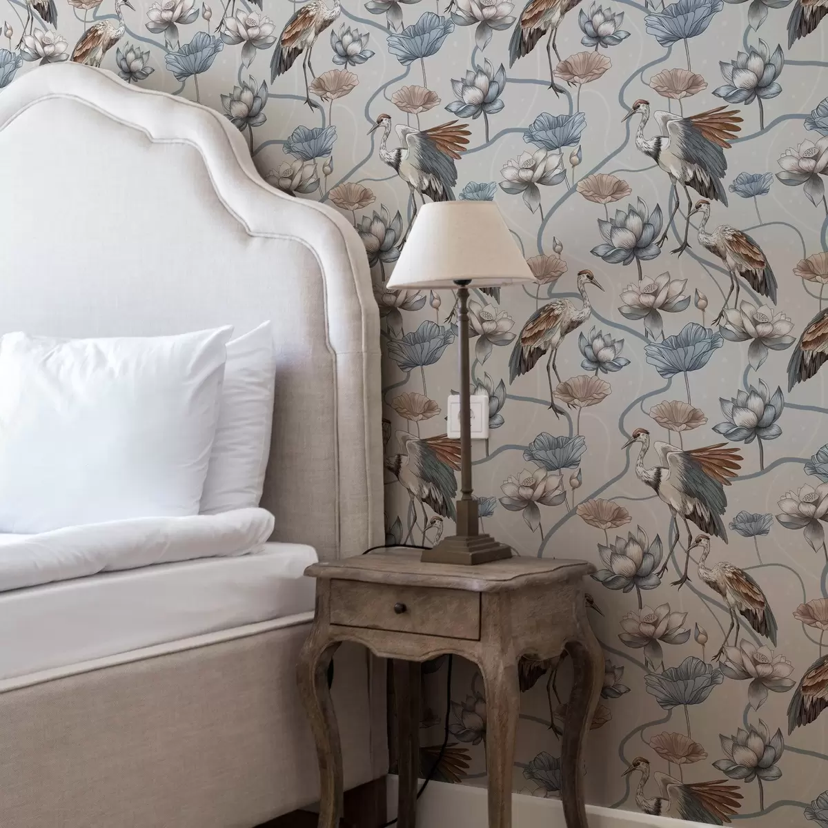 Carta da parati Composizione con gru e fiori di loto dai colori pastello Nr. a00064