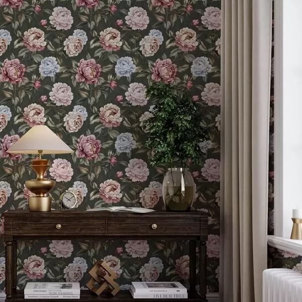 Carta da parati Peonie su sfondo verde scuro Nr. a00106
